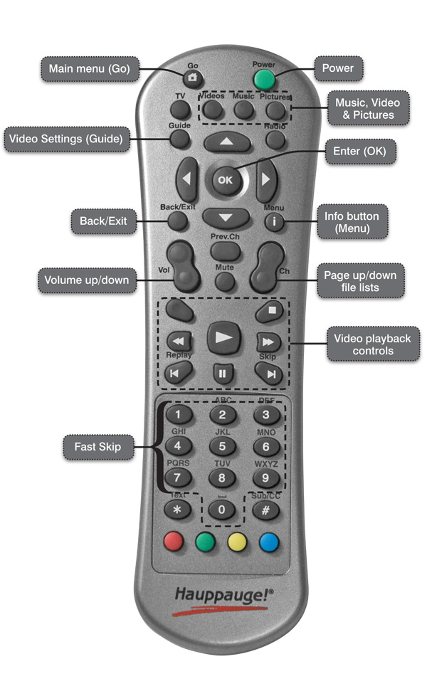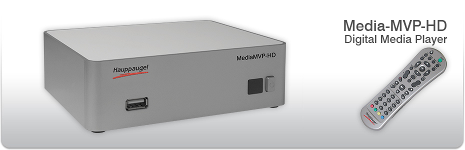 Geben Sie Videos, Bilder und Musik auf Ihrem HD-Fernseher wieder Neben allen wichtigen Audio- und Videoformaten können Sie mit der MediaMVP-HD auch alle Aufzeichnungen, die Sie mit Ihrer Hauppauge WinTV-Karte aufgenommen haben, wiedergeben.