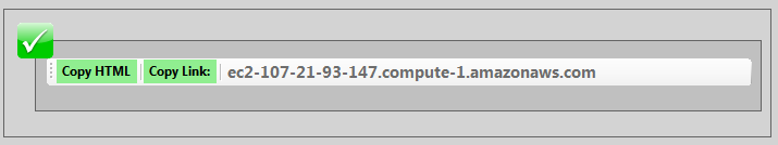 - Wenn der "Copy HTML" Knopf grün aufleuchtet, klicken Sie darauf. Dies kopiert den HTML Einrichtung Code in die Windows Zwischenablage. Siehe weiter unten ein Beispiel für einen solchen HTML Code.