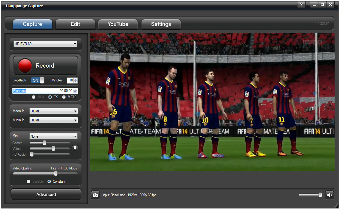 Die HD PVR 60 kann bis 1080p Auflösung bei 60 Bildern pro Sekunde von unverschlüsselten HDMI Quellen aufnehmen.